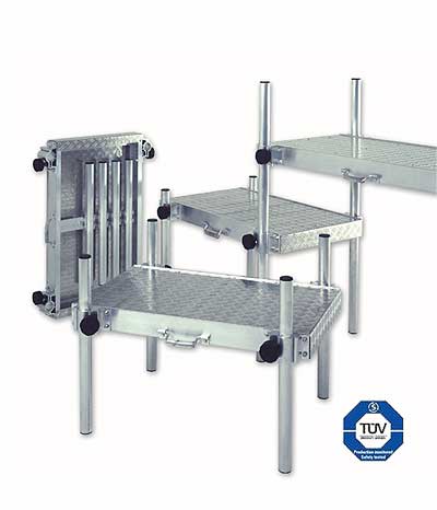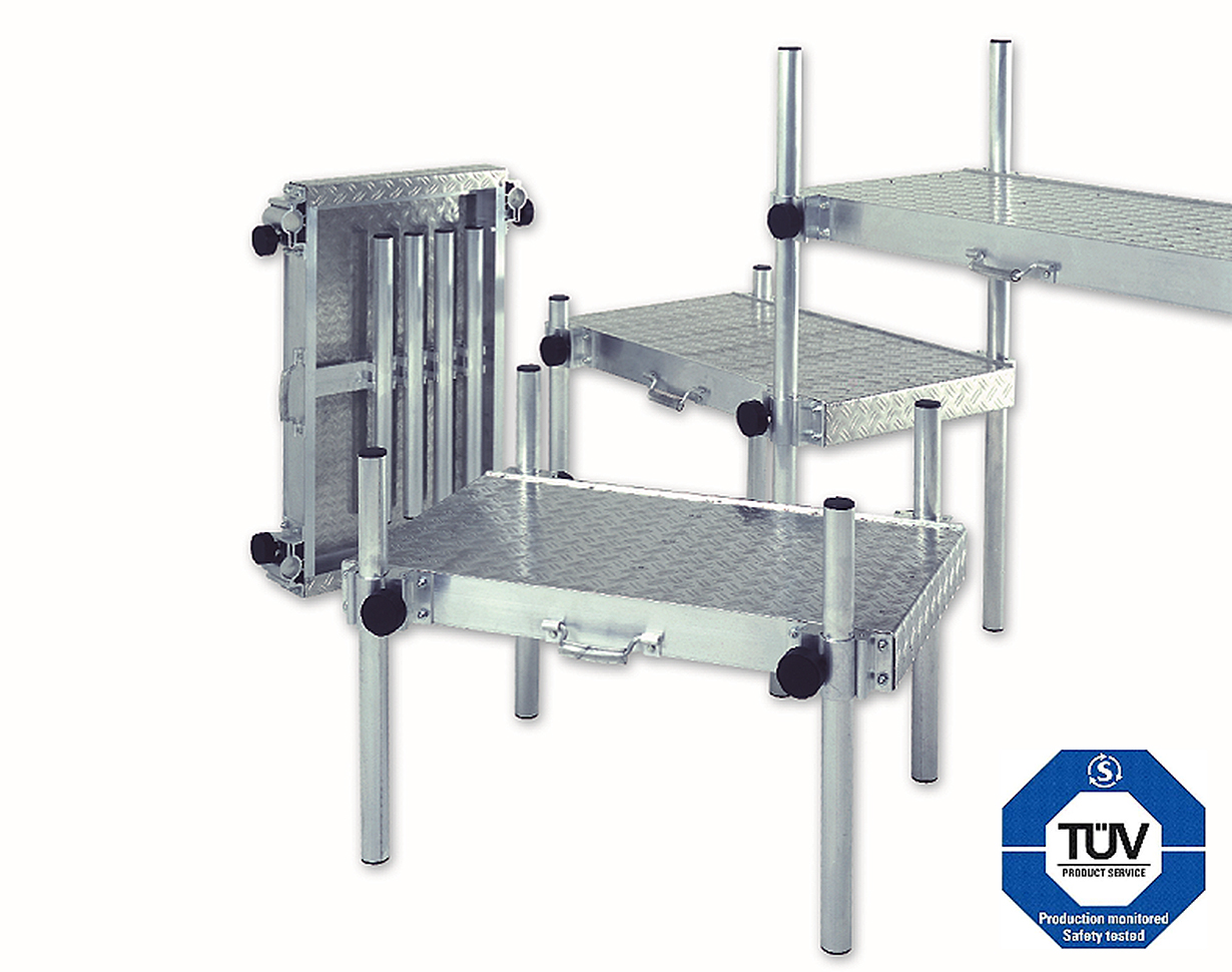 Der Aluminium-Montagetritt ist stufenlos höhenverstellbar, stabil und super leicht.